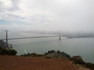 Last Sunday I went to the San Rafael Farmer's Market (supposedly the best) and then went hiking. Not as scenic as Sunday, but still pretty neat. The ocean was just beyond the hills in the distance and the bay was behind me. I just love being near water!